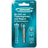 Бита PH2x50 мм с ограничителем и магнитом, для ГКЛ, S2// Gross 11456