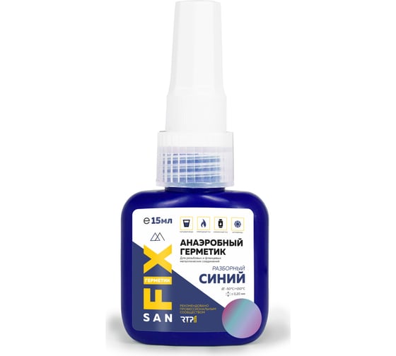Анаэробный герметик заменяет собой льняные волокна и ФУМ ленты, применяется для установки и фиксации металлических соединений с резьбовым профилем (не подходит для цинковых, алюминиевый, кадмиевых, серебряных узлов). Состав повышает стойкость к вибрациям, позволяет выдерживать повышенное давление. Анаэробный герметик SANFIX рекомендован для использования в системах водопровода, в том числе с питьевой водой, теплосетях, газопроводах. Материал применяется в производстве насосного оборудования, используется для герметизации сварных швов и стопорения резьбы.