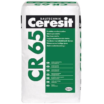Ceresit (Церезит) CR 65 Гидроизоляционная масса. Смесь полимерцементная для устройства гидроизоляции строительных конструкций. Предназначена для гидроизоляции строительных конструкций: бассейнов, фундаментов, гидротехнических сооружений. А так же для внутреннего покрытия поверхности резервуаров, предназначенных для хранения воды, в том числе и питьевой. Готовое покрытие Ceresit из CR 65 необходимо защищать от механических повреждений плиточной облицовкой. А так же обработки стяжкой или штукатуркой. не содержащей гипс. высокая адгезия к основаниям устойчивая к воздействию нефтепродуктов паропроницаемая морозостойкая водостойкая экологически безопасная