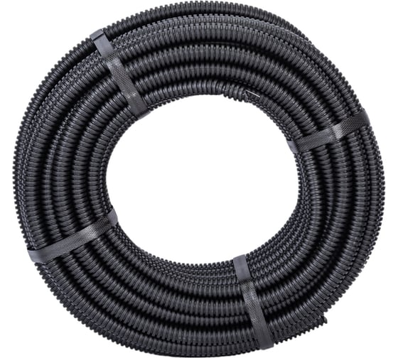 Труба гибкая гофрированная лёгкого типа из ПНД, 16 мм, 20 м, чёрная. Применяется для открытой и скрытой проводки по стенам (в стенах), потолкам (в потолках) из несгораемых и трудносгораемых материалов, а также вне помещений (непосредственно в грунт).
