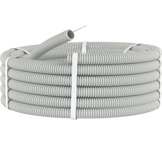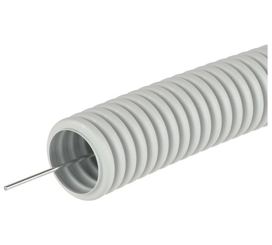 Легкая труба ПВХ гофро с протяжкой , серая, 20мм х100м защищает кабель от механических повреждений. Изготовлена из ПВХ, что обеспечивает ей высокий уровень износоустойчивости. Монтировать трубу можно как внутри , так и вне помещения. Цвет - серый.