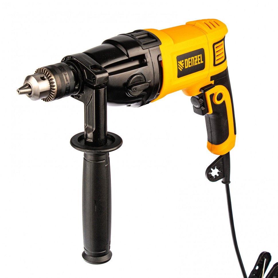 Ударная дрель Denzel ID-1050-2 26312 мощностью 1050 Вт, поддерживает 2 скорости вращения оснастки 0-3000/0-1100 об/мин и частоту ударов 0-48000/0-17600 уд/мин. Используется для ручного или ударного сверления металла, древесины, легкого бетона, кирпича, плитки или пластика. Сверлит отверстия диаметром до 25 мм в древесине, до 13 мм в бетоне и до 13 мм в металле. Эффективное сверление твердых материалов обеспечивает массивный промщит ударного механизма. Дрель работает со сверлами с диаметром хвостовика 1,5-13 мм, что позволяет эффективно решать различные задачи.