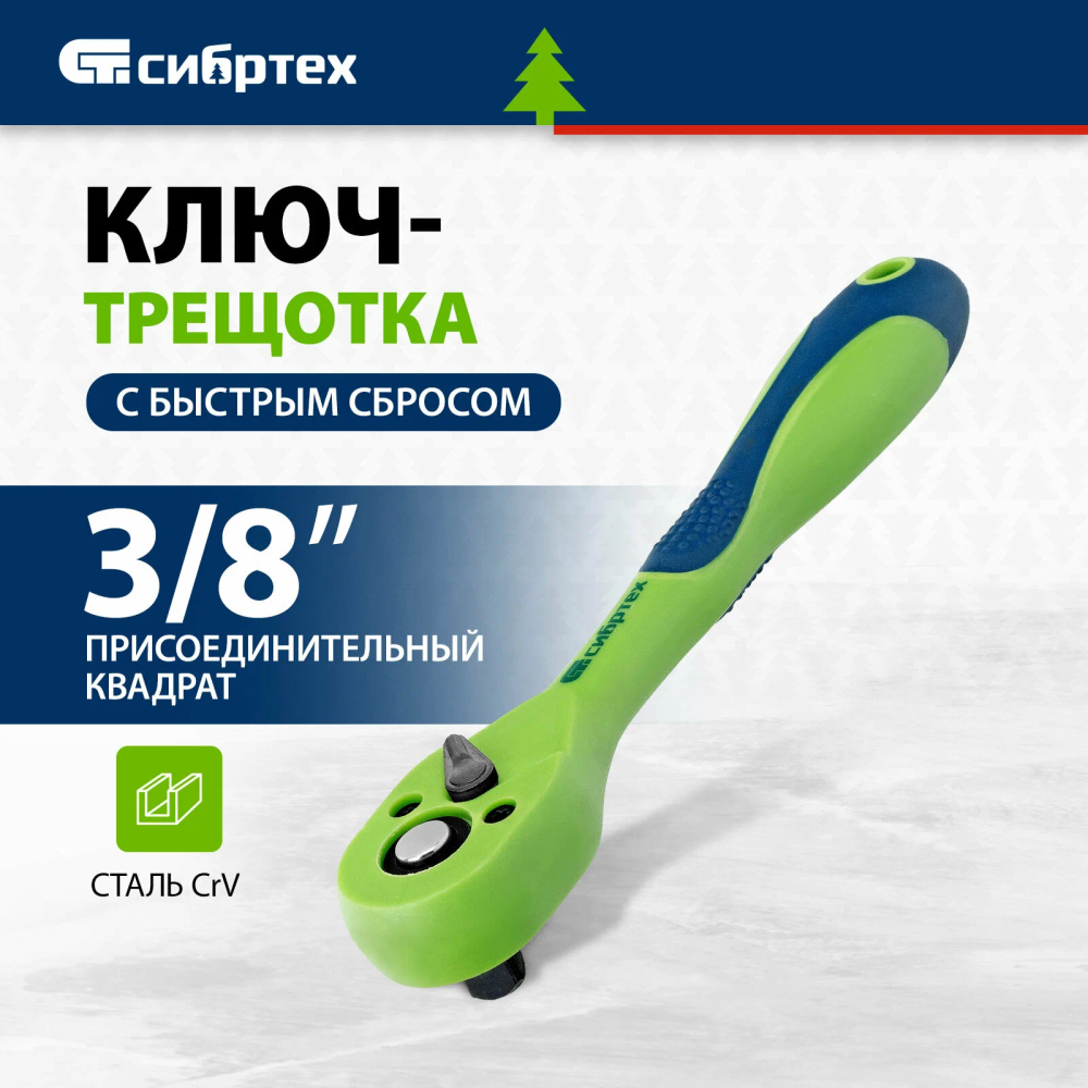 Ключ трещотка двухкомпонентная рукоятка 3/8"// Сибртех в Петропавловске