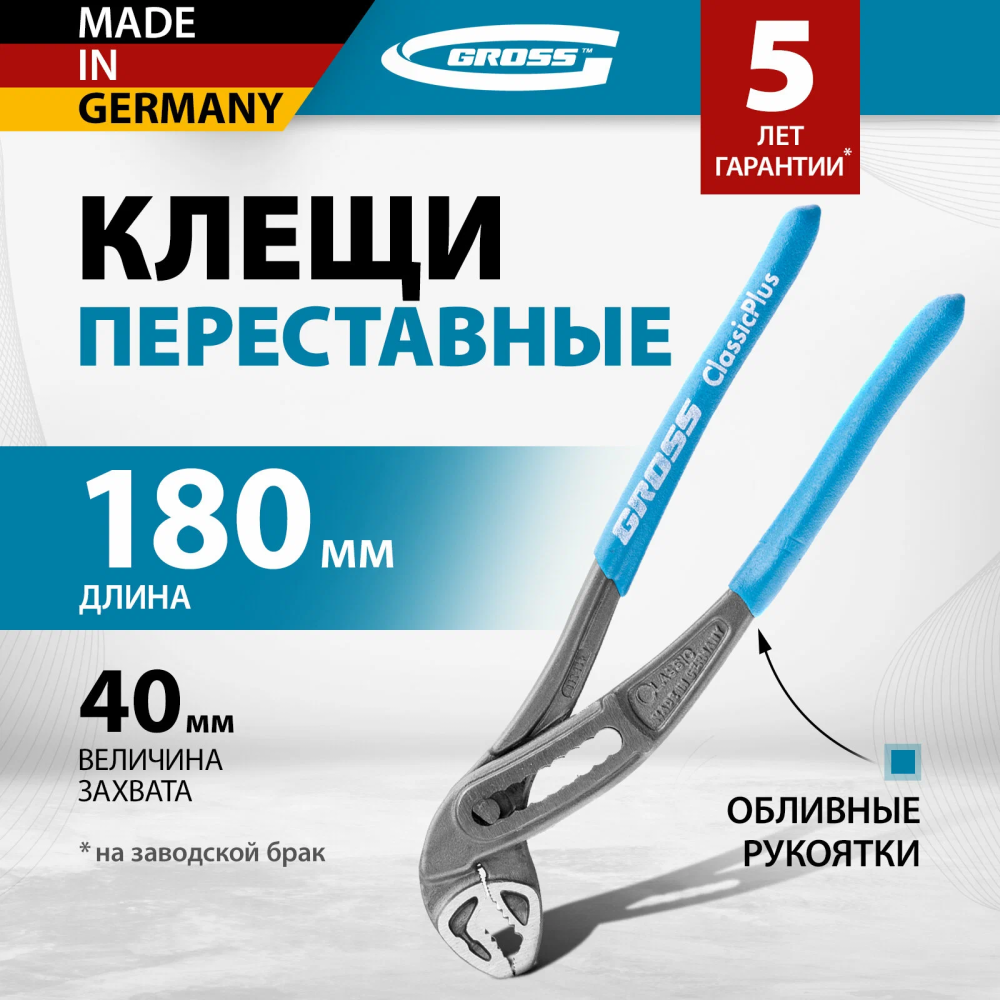 Клещи переставные, обливные рукоятки 180 мм// Gross в Петропавловске