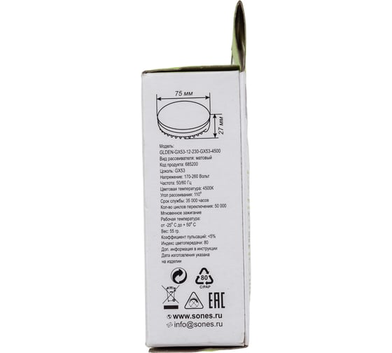 Технические характеристики General Lighting Systems GX53-12W-GX53 685200