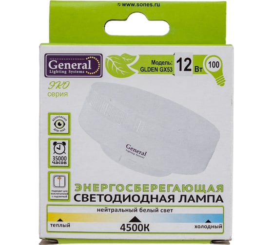 GENERAL GX53 12W 4500K арт 685200 в Петропавловске