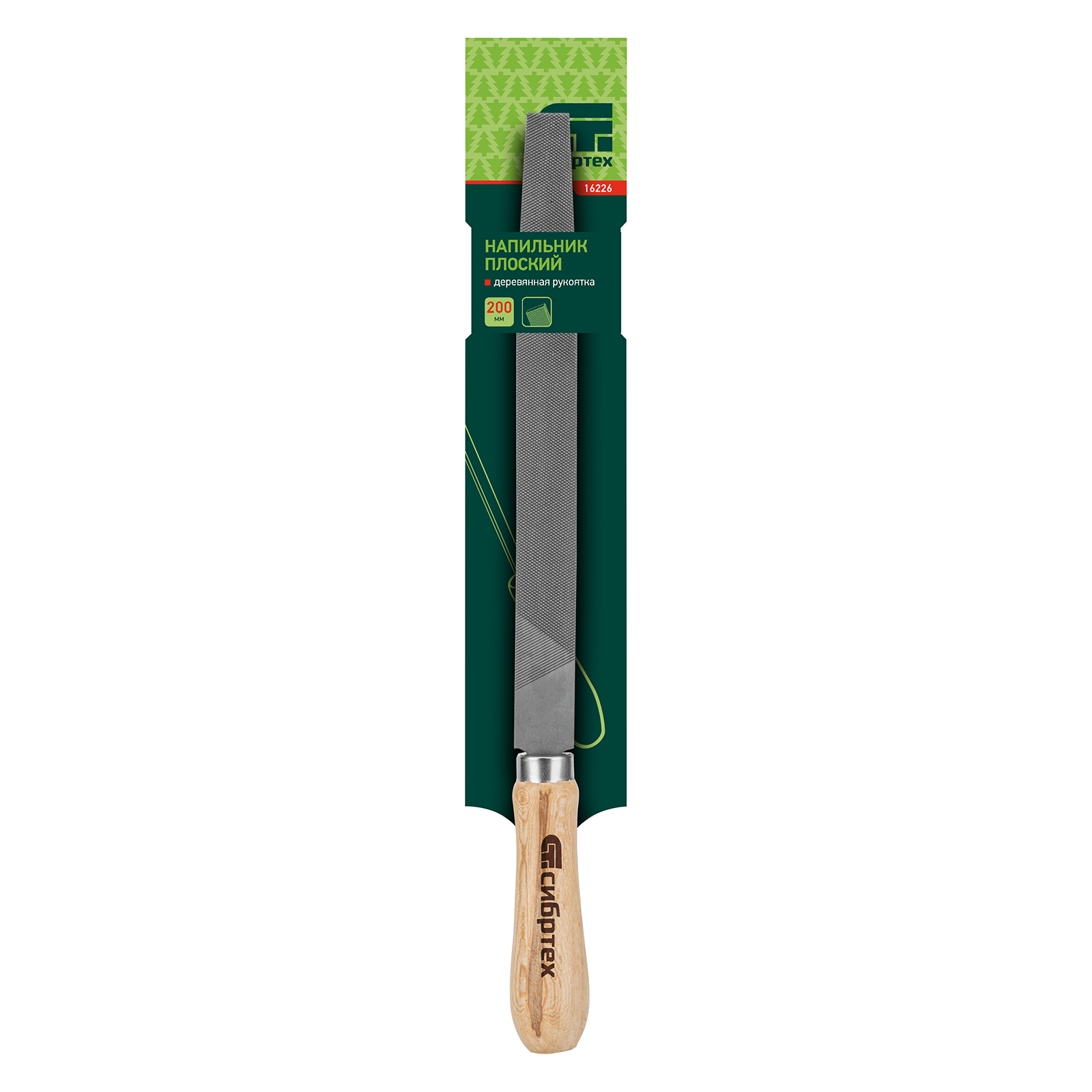 <p>Плоский напильник Сибртех 16226 с полотном длиной 200 мм и деревянной ручкой предназначен для опиливания металлических заготовок. Позволяет придать им нужную форму или размер, а также зачистить поверхность от заусенцев. Двойная перекрестная насечка №2 обеспечивает быструю и качественную опиловку твердых металлов. Напильник пригодится в слесарной мастерской, а также дома, на даче или в гараже.</p><h2>Преимущества</h2><ul><li>Прочность — инструмент из углеродистой стали выдерживает повышенные нагрузки.</li><li>Долговечность — лаковое покрытие защищает рукоятку от рассыхания.</li><li>Комфортная работа — деревянная рукоятка удобно ложится в руку.</li></ul><h2>Характеристики</h2>Группа товаров: Ручной инструмент<br/>Длина, мм: 294<br/>Бренд: СИБРТЕХ<br/>Длина рабочей части, мм: 200<br/>Материал рукоятки: древесина твердых лиственных пород<br/>Рукоятка: деревянная<br/>Форма: плоский<br/>