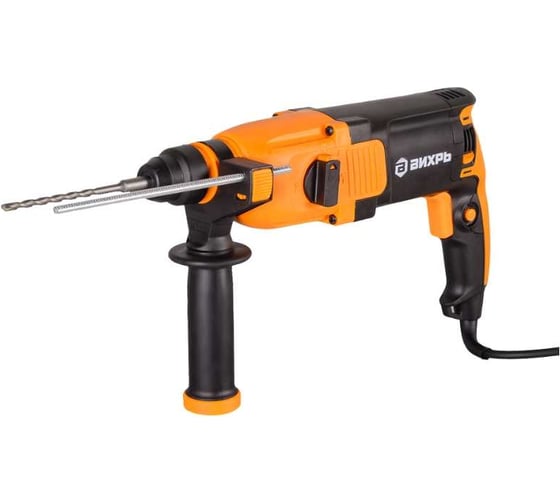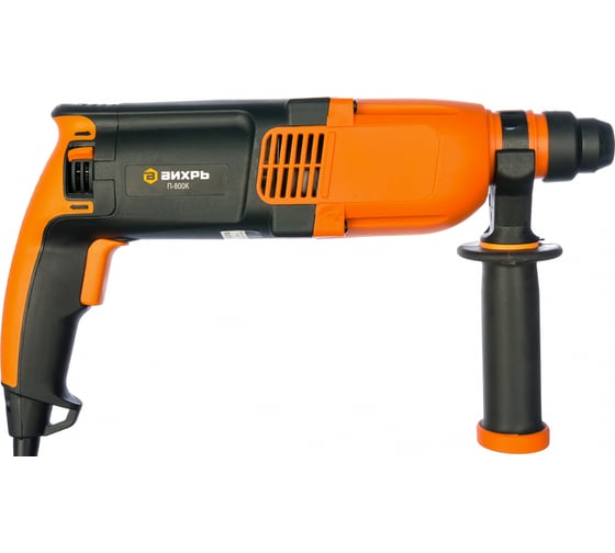 Перфоратор Вихрь П-800К оснащён электрическим двигателем, мощность которого составляет 800Вт, а также пневматическим ударным механизмом, который обеспечивает удар 3.2 Дж. Функционирование возможно в режимах обычного сверления, с ударом, режим удара.