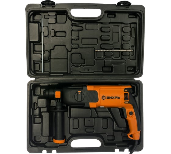 Электрический перфоратор Вихрь П-900К обладает мощностью 900 Вт. Это дает возможность работать в трех режимах: сверление, сверление с ударом и режим удара. Максимальная скорость вращения составляет 1100 об/мин. Ее регулировка позволяет настраивать интенсивность работы в зависимости от плотности материала. Наибольший диаметр сверления для древесины составляет 40 мм, для металла - 13 мм, для бетона - 30 мм. Частота ударов равна 5200 уд/мин, что обеспечивает высокую производительность. Энергия удара 4 Дж позволяет выдерживать сложные и продолжительные виды работ. Тип хвостовика SDS-PLUS предназначен для быстрой замены оснастки.