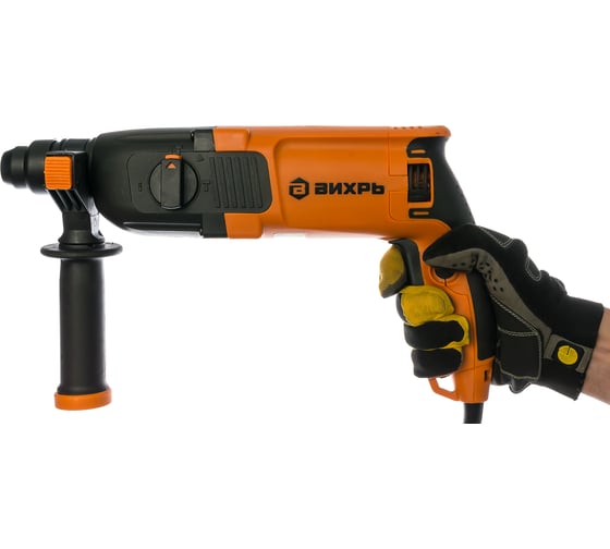 Перфоратор Вихрь П-900К обладает весом 2,7 кг. Настройка углового положения инструмента обеспечивают удобство использования в труднодоступных местах.
