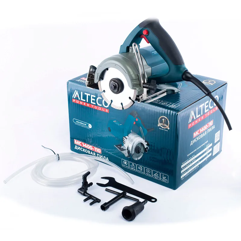 Дисковая пила ALTECO MC 1400-110 предназначен для резки всех видов натуральной и искусственной плитки. Угол наклона диска можно отрегулировать в диапазоне от 0 до 90 градусов. Корпус редуктора и защитный кожух изготовлены из металла, благодаря чему срок службы выше.