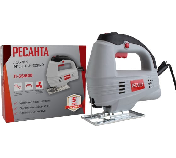 Лобзик электрический Ресанта Л-55/600 отлично справляется с резкой не только пиломатериалов, но и стальных листов, пластмассы. Он просто незаменим в столярной мастерской или дома. Так аккуратно и ровно, как электролобзиком вырезать в древесине отверстие не получится ничем другим за короткий срок.