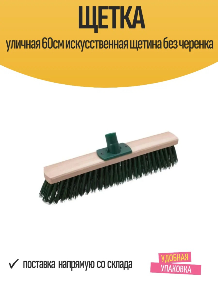 Щетка уличная 60см искусственная щетина без черенка. Щетка для подметания идеально подходит для уборки пола, подметания песка, пыли, грязи, мусора на твёрдых поверхностях из любого материала, как внутри помещений, так и за его пределами: на асфальте, плитке, граните. Подходит для уборки больших площадей. Основание щётки выполнено из натурального дерева. Щётка оснащена резьбой для крепления палки-рукоятки.
